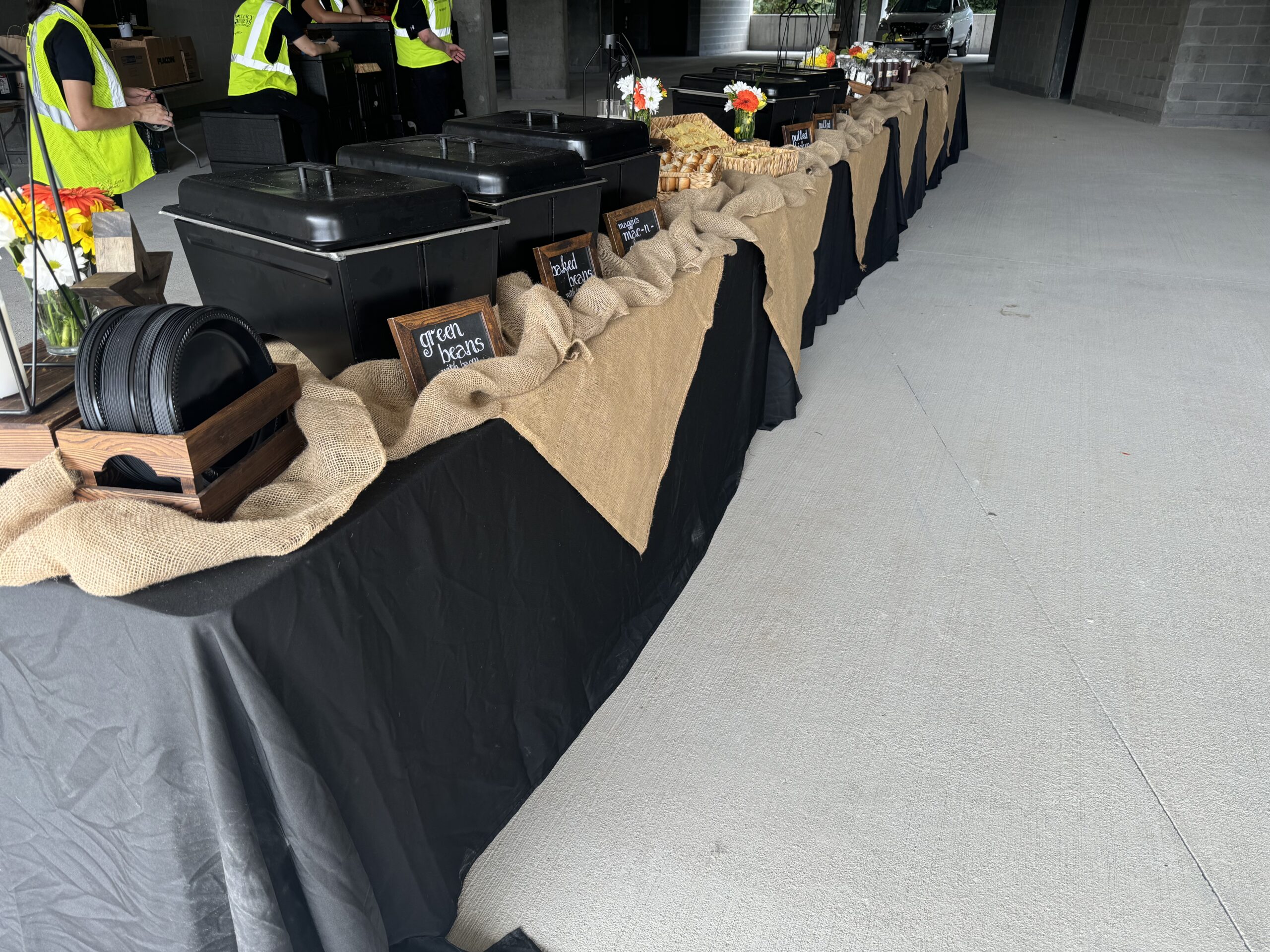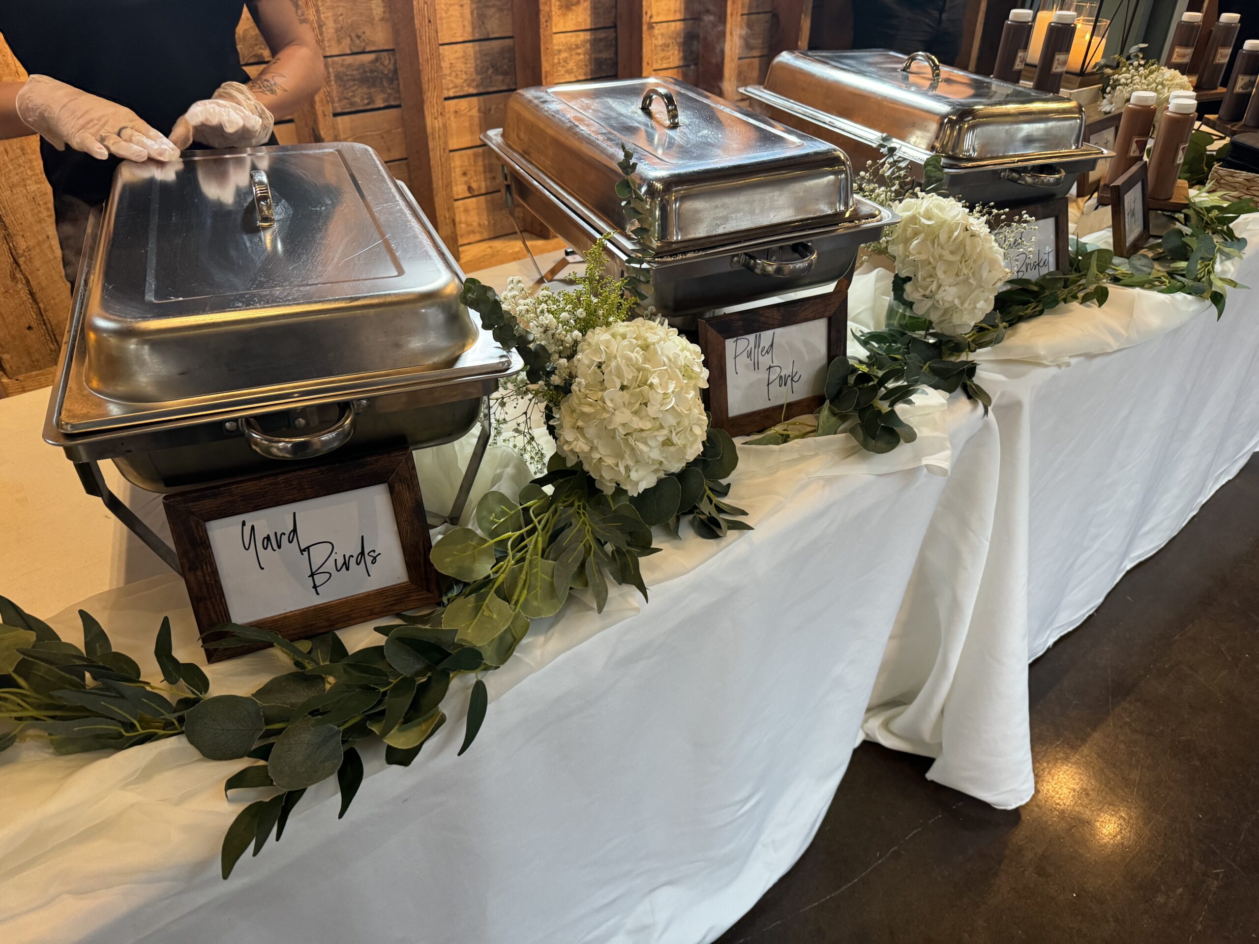 We are a company that loves to give back to those who have served our country–military, first responders, etc. We serve homemade sides and oak smoked meats! We cater all types of events–from weddings to office parties, any kind of party you can think of we can be there for you!